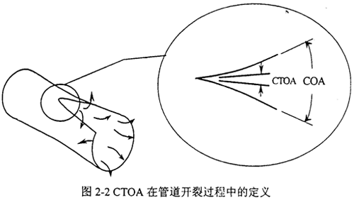 裂紋尖端張開角CTOA(Crack Tip Opening Angle)最早被用來分析核電站管路的穩(wěn)態(tài)裂紋擴(kuò)展,后來用于輸氣管線和航空工業(yè)。如圖2-2,與裂紋張開角COA不同,CTOA對(duì)應(yīng)于一定的斷裂擴(kuò)展?fàn)顟B(tài),不隨測(cè)量點(diǎn)的位置而改變。CTOA在數(shù)學(xué)上可以按下式定義: