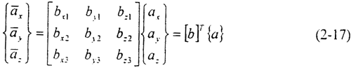 對(duì)于總體坐標(biāo)系中的任意矢量a,其在節(jié)點(diǎn)坐標(biāo)系中的分量可以表達(dá)為:
