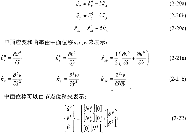 基于Kirchhoff假設(shè)的板殼單元,殼體中某一點(diǎn)的應(yīng)變,可以由中面應(yīng)變,和曲率,來表示: