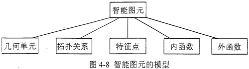 在系統(tǒng)實現(xiàn)中,智能圖元是一個典型的“類”的結(jié)構(gòu),包括幾何單元集合、拓?fù)潢P(guān)系描述、特征點集合、內(nèi)函數(shù)和外函數(shù)(見圖4-9),定義如下: