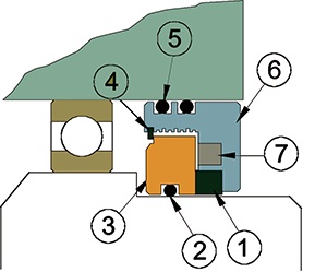 (7)絕緣磷青銅套,磁體沿磷青銅套均勻分布,確保密封端面上的負(fù)荷一致,而且該部件可用來(lái)減低設(shè)備卡住或金屬部件在徑向軸竄動(dòng)過(guò)大時(shí)產(chǎn)生火花的可能性。